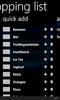 What else does the perfect shopping list need? It should tell you something about your list even if the app is closed. Cool that Windows Phone offers the live tile. This way I'm able to write the number of items to buy to the tile and on the back of the tile I write randomly changing the item names and quantity. So how does this look like? Here we go.